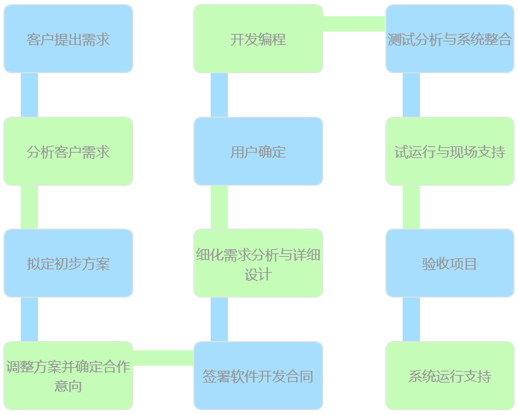 三河有云开发人员构思、确立系统目标、划分业务领域、现行业务分析、建立业务模型、信息需求分析、用户视图规范化、数据元素标准化与一致性控制等。 在项目组和用户充分交互、理解的基础上,提出系统的技术构架,对系统功能、性能等主要指标作描述,对实现方法项目实施人员应有一个比较清晰的轮廓及整体设计思路,对有疑问的地方及时与业务需求人员进行沟通交流,最终达成共识。 综合对该用户群体现有硬件配置,软件配置,网络使用情况,数据库使用情况,计算机熟悉程度做一定的调研,根据调查的统计结果决定即将开发的一些软件适用指标。