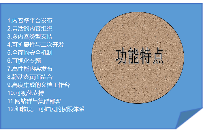 网站内容管理系统 (简称CMS) 是一套基于J2EE和插件技术的、面向高端用户的网站内容管理软件,集内容规划、内容创作、内容编辑、内容审核、基于模板的内容发布等功能于一身,并提供互动组件、可视化专题、内容采集、内容检索、访问统计等扩展功能。通过简单易用的WEB界面,CMS允许非技术人员互相协作以创建、编辑和发布各种内容,实现网站的快速更新。CMS支持可视化专题创作,可以帮助不熟悉HTML和CSS的编辑人员,针对重大事件、突发事件进行拖拽式快速制作专题页面。CMS提供完善的国际化支持,是国内唯一同时支持前台、后台国际化,并且可以自行添加新的语言的内容管理产品。CMS还支持网站群、多维分类、虚拟栏目、多发布点、集群部署等高端特性,可以轻松创建和管理超过1000万个页面的大型门户网站。 CMS本身基于插件机制开发,各插件预留了大量的扩展点和扩展服务,用户可以通过这些扩展点和扩展服务为CMS扩展新功能,也可以覆盖CMS已有插件的各项功能,甚至可以根据实际需要改变CMS默认的菜单、工具栏、界面和业务逻辑。有云软件提供了基于Eclipse的二次开发工具ZDeveloper,使用该工具提供的可视化向导可以帮助用户快速创建新的CMS插件工程,并支持快速创建CRUD(增、查、改、删)文件、引用扩展点、注册扩展项到扩展服务等功能,还支持对插件工程打包、部署和联合调试。CMS提供了目前内容管理领域内的较高规格的二次开发支持。